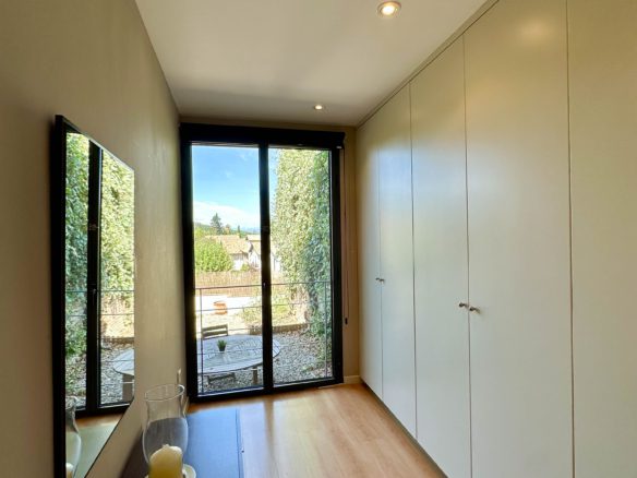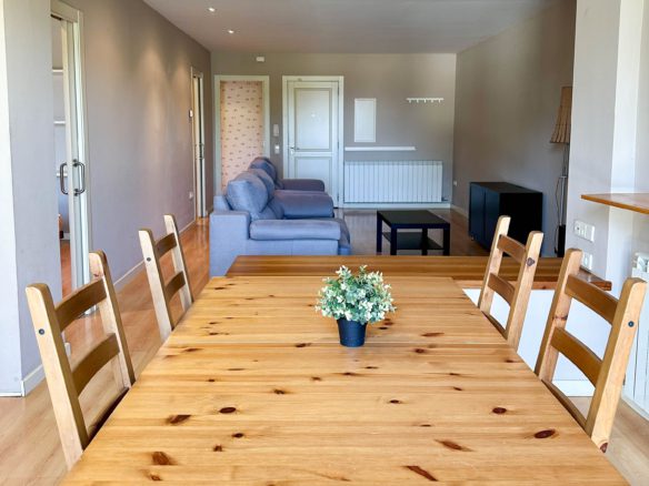 A l’interior hi trobem dues habitacions (una doble i una individual), un ampli vestidor, un bany complet i una cuina oberta que s’integra amb la sala d’estar, oferint un espai diàfan, lluminós i molt acollidor. A més, disposa d’una xemeneia que aporta calidesa i confort en les temporades de fred.